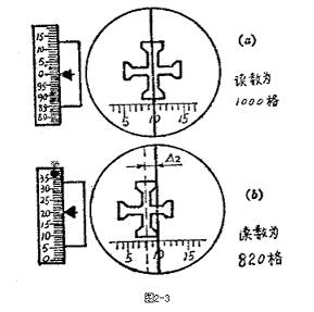 4)將橋板12放在圖2—4中的0—1的位置上,調(diào)整儀器本體及橋板,使從目鏡中能看到十字刻刻線6的影象且位于視場(chǎng)中央。