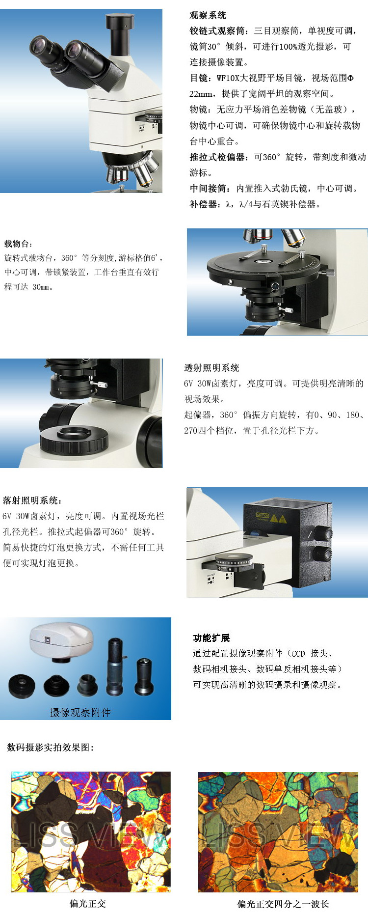 本系列偏光顯微鏡是研究晶體光學(xué)性質(zhì)的重要儀器,同時(shí)又是其他晶體光學(xué)研究法(油浸法、弗氏臺(tái)法等)的基礎(chǔ)。