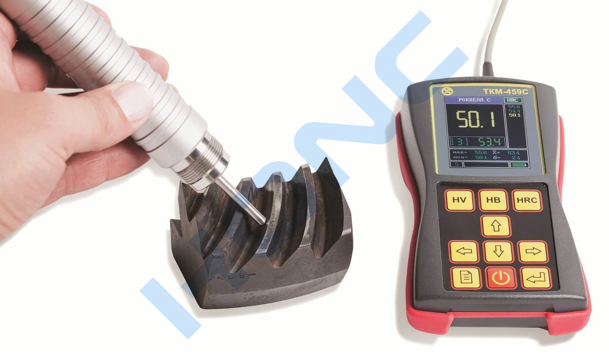 TKM-459C“Special”超聲波硬度計(jì) ,可成功應(yīng)用于極其惡劣的生產(chǎn)和現(xiàn)場(chǎng)條件。該設(shè)備及其配件均置于防震盒中,套件包含一個(gè)用于定位傳感器的“U-459”附件和一個(gè)HRC硬度控制樣品。