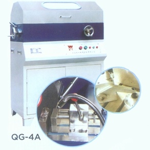 Q-4A(QG-4A)型 立式金相試樣切割機,砂輪主軸在砂輪架軸承座里,電動機連接三角皮輪的傳動而獲得有效轉(zhuǎn)速,主輪的擺動被切割的樣件處在有效的位置,搖臂的擺動完成切割動作,工作臺面上的快速夾緊裝置,壓桿可前后移動,使用方便,夾緊裝置可自由拆卸、清洗,工作區(qū)域采用全封閉式結(jié)構(gòu),并有透明防護罩,供切割時觀察。配有冷卻水箱專供儲存冷卻液,切忌使用自來水作為冷卻液。