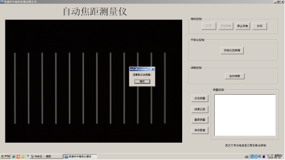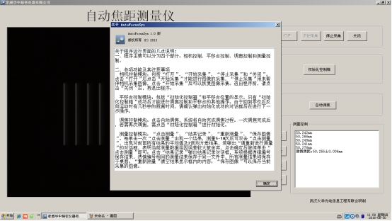 2.3、再點擊“自動調(diào)焦”,稍等。此時平移臺移動,正在尋找鏡頭的焦面位置。直至軟件界面出現(xiàn)清晰的分劃板圖案,出現(xiàn)“調(diào)焦結(jié)束”按鈕,點擊“確定”即可。