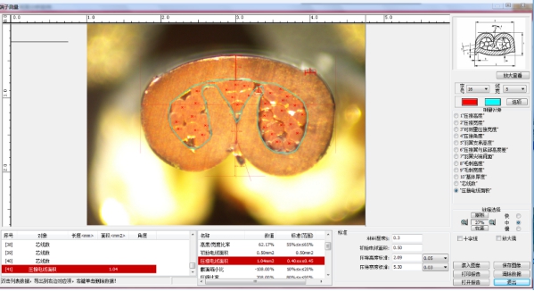 4、專業(yè)線束端子分析軟件系統(tǒng)可分析壓縮比,面積,C/H,C/W,等數(shù)據(jù)。