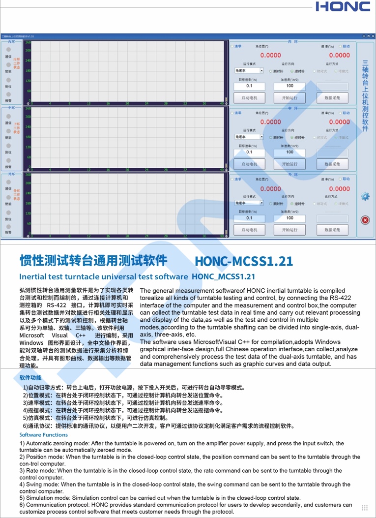 本系列轉(zhuǎn)臺具有兩種操作方式:本地控制和遠地控制,本地控制在測控柜液晶觸摸屏上進行操作,遠地控制由用戶的計算機通過網(wǎng)絡接口或串口進行操作。